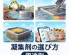 土木工事の濁水、コンクリートノロ水、強アルカリ排水まで幅広く対応。標準型・アルカリ型どちらも試せます。