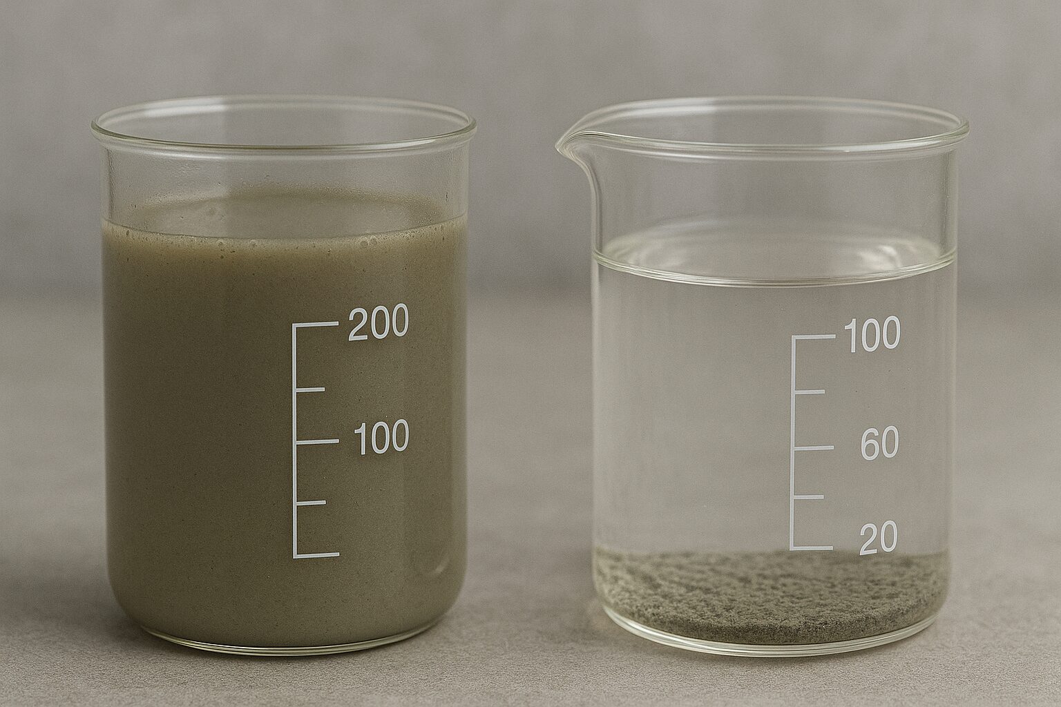 コンクリート洗浄水・カッター排水(ノロ水)などは pH10〜12の強アルカリ排水 のため、通常の凝集剤では沈降しません。