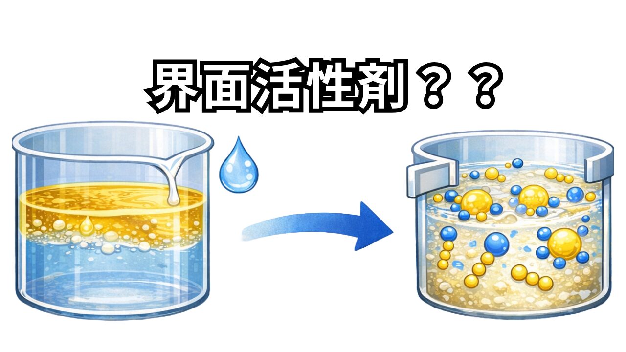 界面活性剤とは、水と油のように本来混ざらないものを安定して混ぜるための成分です。